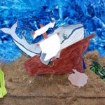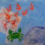 — J’ai une idée ! répond la baleine, je vais faire de la musique pour accompagner les crevettes.
