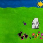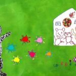 — Oh mais, nous avons un problème ! Le loup a volé notre peinture ! Il faut aller dans la maison du loup et prendre la peinture sans qu’il nous voie !