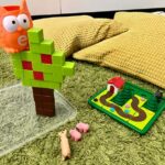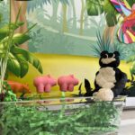 Ensuite, les trois petits cochons, Rafiki et Volvite partent chercher les ingrédients. Ils trouvent : une plume blanche, une fleur bleue, un fruit rouge, de la terre marron, une plume de perroquet orange, de l’herbe verte, une feuille jaune et du charbon noir.