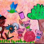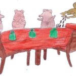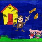 — Nous avons besoin de ton aide, poursuivent les trois petits cochons. Le loup souffle sur notre maison et la détruit à chaque fois. Nous en avons assez ! Nous pensons peindre quelque chose sur les murs pour l’en empêcher, mais quoi ?