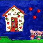 — Et si on peignait des cœurs et des papillons pour que le loup ne veuille plus détruire notre maison, dit le deuxième petit cochon.